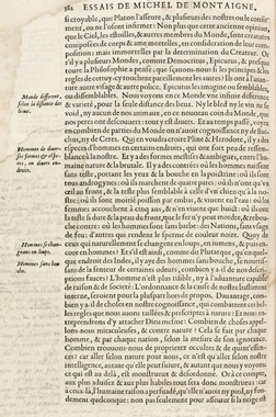Jean-Jacques Rousseau’s annotations on p. 382 of his copy of the Essais (1652). From the Montaigne Library. [This image not on display]