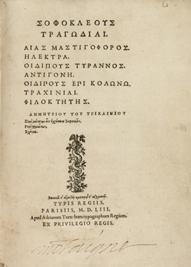 Montaigne’s copy of the complete works of Sophocles (1553). From the Montaigne Library.